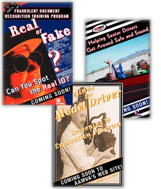 Movie-themed posters to promote new programs from the American Association of Motor Vehicle Administrators.